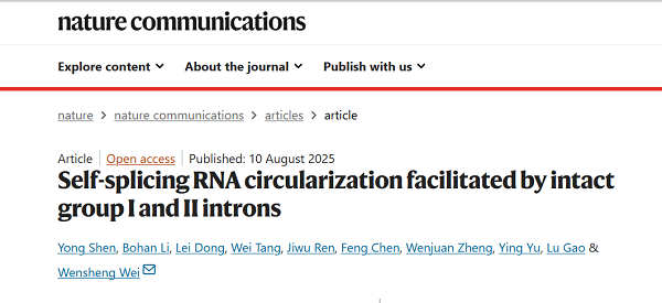 2025 年 8 月 10 日,一項(xiàng)在 RNA 治療領(lǐng)域具有里程碑意義的研究成果重磅發(fā)布 ——北京大學(xué) / 昌平實(shí)驗(yàn)室魏文勝教授團(tuán)隊(duì)與圓因生物攜手,在國際知名期刊《Nature Communications》發(fā)表了題為 “Self-splicing RNA circularization facilitated by intact group I and II introns” 的研究論文。該研究提出了兩種全新的體外 RNA 環(huán)化技術(shù),不僅為 RNA 環(huán)化領(lǐng)域帶來了革新,也凸顯了圓因生物在環(huán)狀 RNA 平臺搭建方面的卓越實(shí)力。